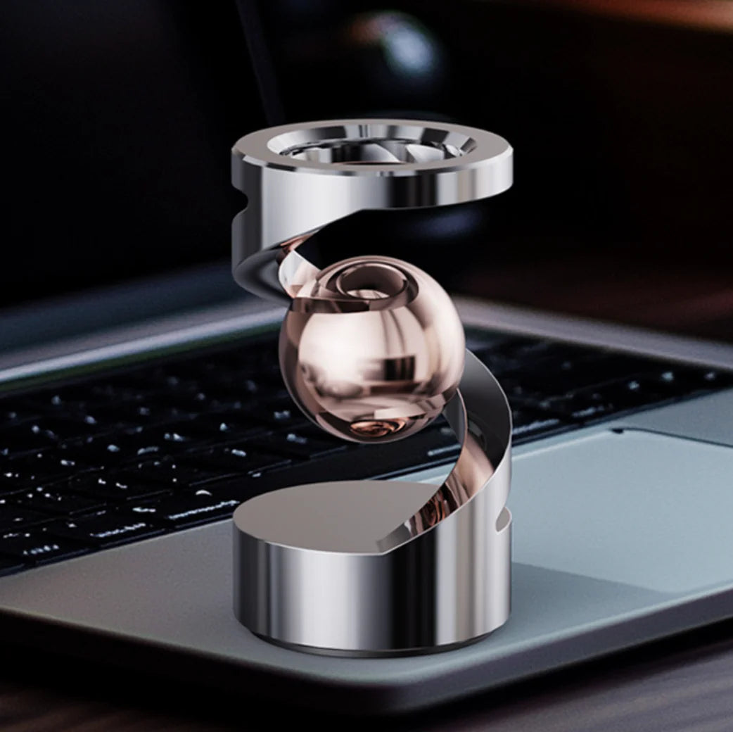 Gently spin the levitating orb and watch it glide in complete silence. As you observe its weightless, floating motion, allow your own mind to feel lighter. Take a slow, deep breath and let the noise of the day dissolve.